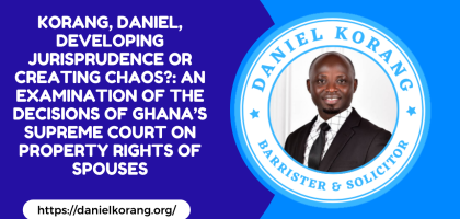 Korang, Daniel, Developing Jurisprudence or Creating Chaos?: An Examination of the Decisions of Ghana’s Supreme Court on Property Rights of Spouses