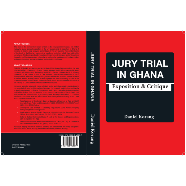 This book is the pioneer text locally written on the jury system in Ghana. It is written mainly to give a general exposition of the jury system and its operation in Ghana. It contains a step-by-step analysis and critique of the jury system. The central theme of the book is that the jury system is a moribund and anachronistic institution which has long outlived its usefulness. The book specifically repudiates the perceived relevance and philosophical justifications of the jury system. It exhaustively outlines the challenges of the jury system while making recommendations for its abolition in Ghana. This book is an unparalleled tour de force.